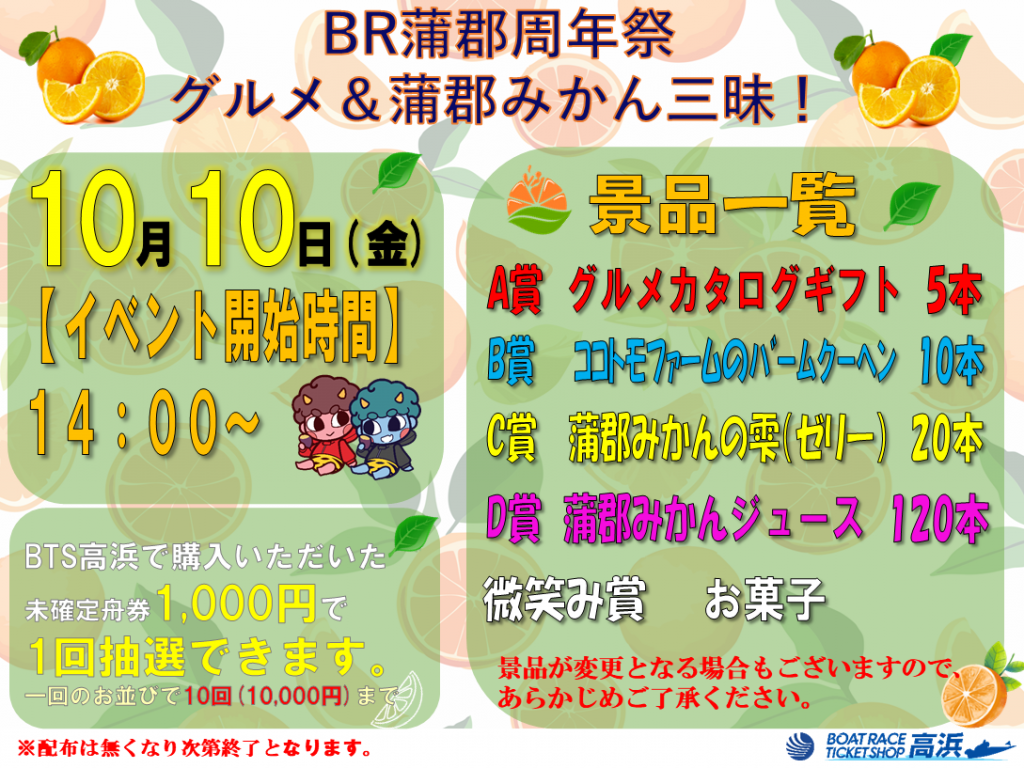 10月10日(金)BR蒲郡周年祭グルメ&蒲郡みかん三昧!開催のお知らせ