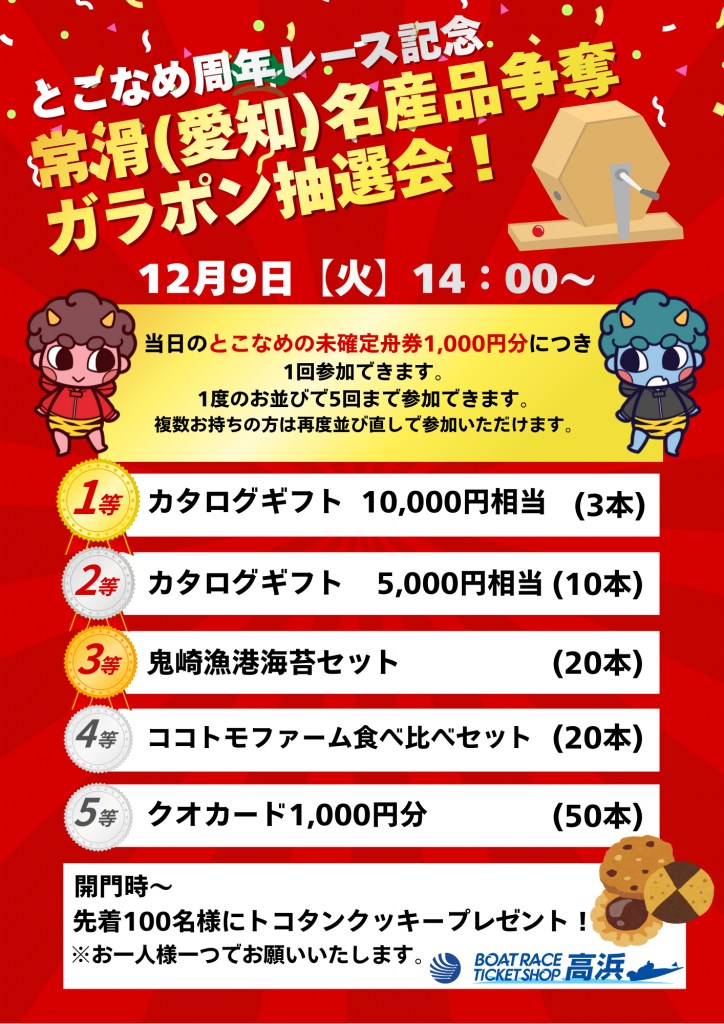 12月9日(火)とこなめ(愛知)名産品争奪ガラポン抽選会!
